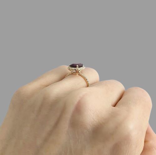 Oval Ruby Diamond Halo Ring: 18K Yellow Gold Statement Jewelry