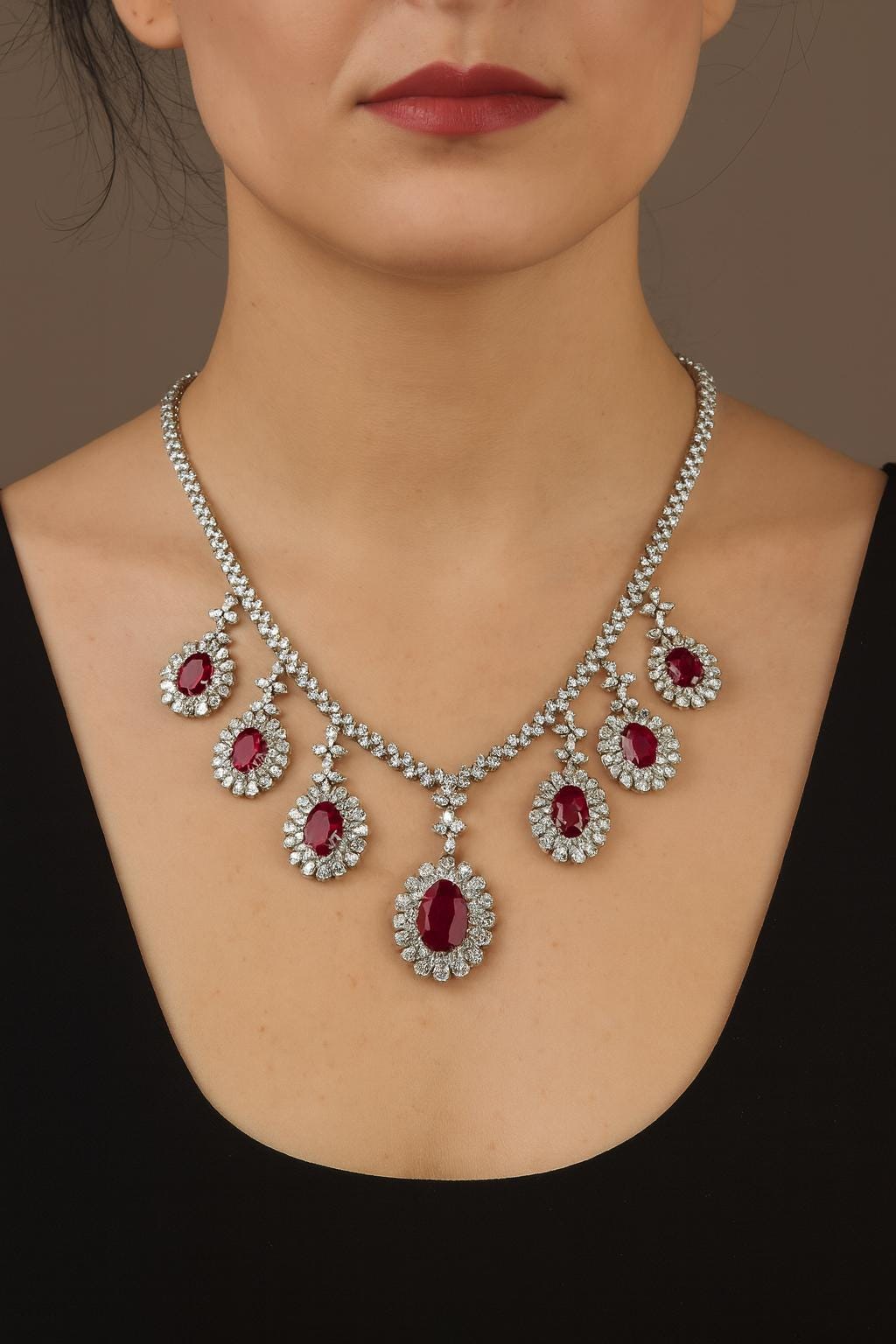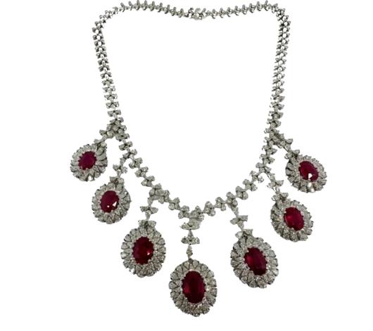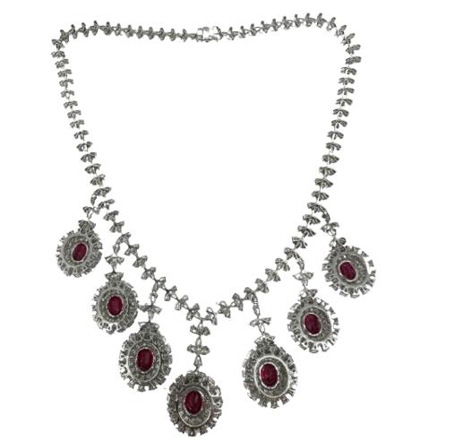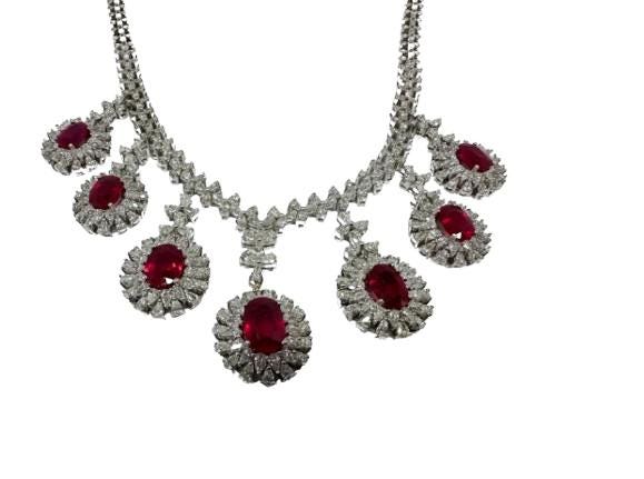 33.85 Carat Ruby & Diamond Necklace: 18K White Gold Luxury Jewelry