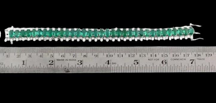 30.39 Carat Zambian Emerald SI/H Diamond Bracelet 18K White Gold Luxury Fine Jewelry Natural Gemstone Tennis Bracelet Gift for Women