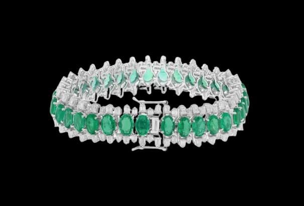 30.39 Carat Zambian Emerald & SI/H Diamond Bracelet – 18K White Gold Luxury Fine Jewelry