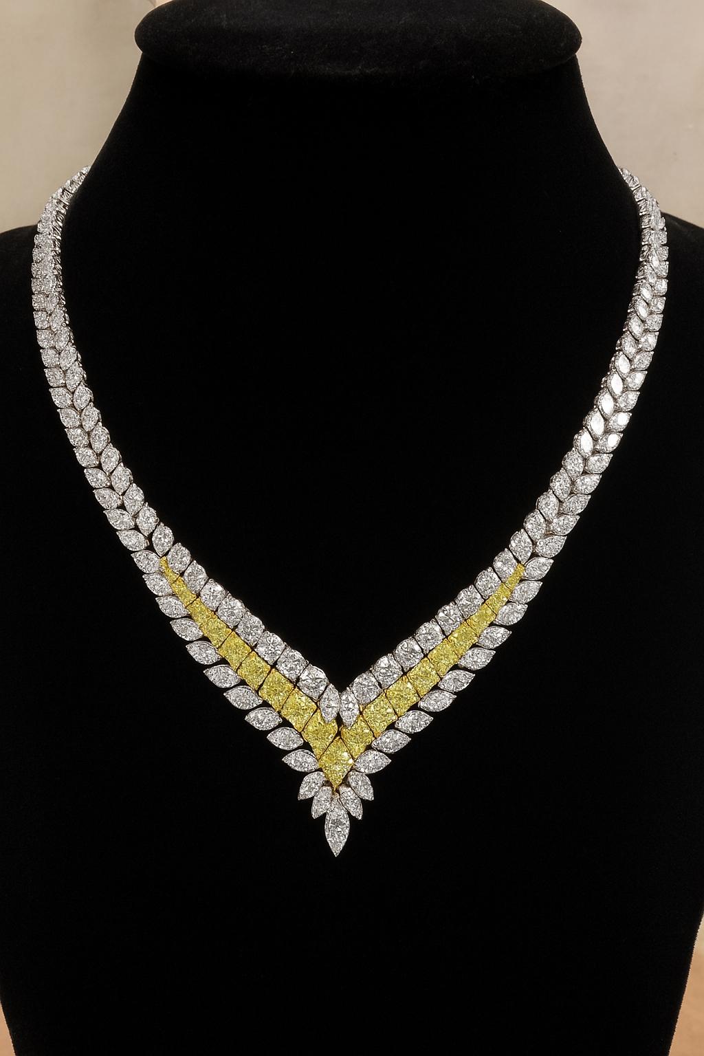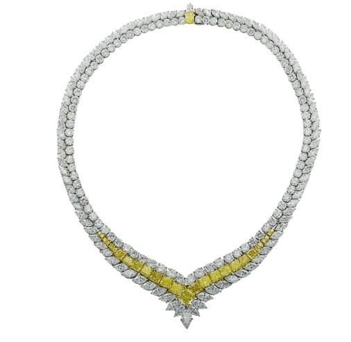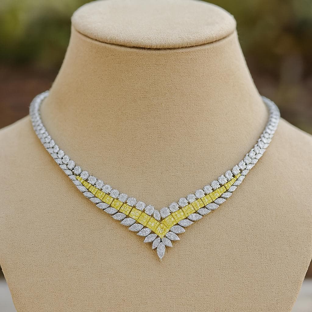 Fancy Intense Yellow Diamond Necklace, 80ct Diamond Necklace, Platinum and 18K Gold Jewelry, Luxury Fine Jewelry, Natural Diamond Necklace, High Jewelry Statement Piece, Yellow and White Diamond Necklace, Fancy Color Diamond Necklace, Red Carpet Jewelry, Anniversary Gift for Her, Wedding Necklace, Collector Jewelry, Designer Diamond Necklace, Handmade Fine Jewelry