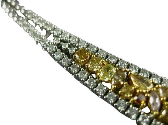 55ct Diamond Necklace, White and Canary Diamond Necklace, Fancy Yellow Diamond Jewelry, Two Tone Gold Diamond Necklace, 18K Gold Tennis Necklace, Leaf Design Diamond Necklace, Natural Diamond Necklace, Luxury Fine Jewelry Gift, High Jewelry Statement Necklace, Handmade Diamond Necklace, Designer Diamond Necklace, Fancy Color Diamond Necklace, Canary Yellow Necklace, Anniversary Gift for Her, Red Carpet Jewelry