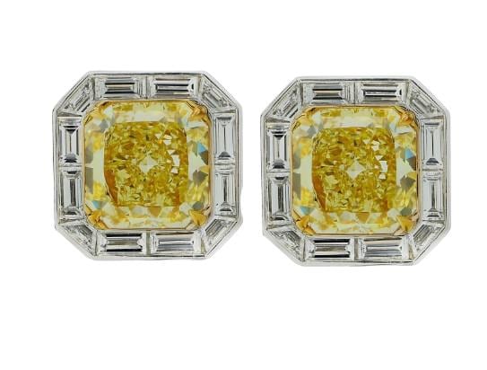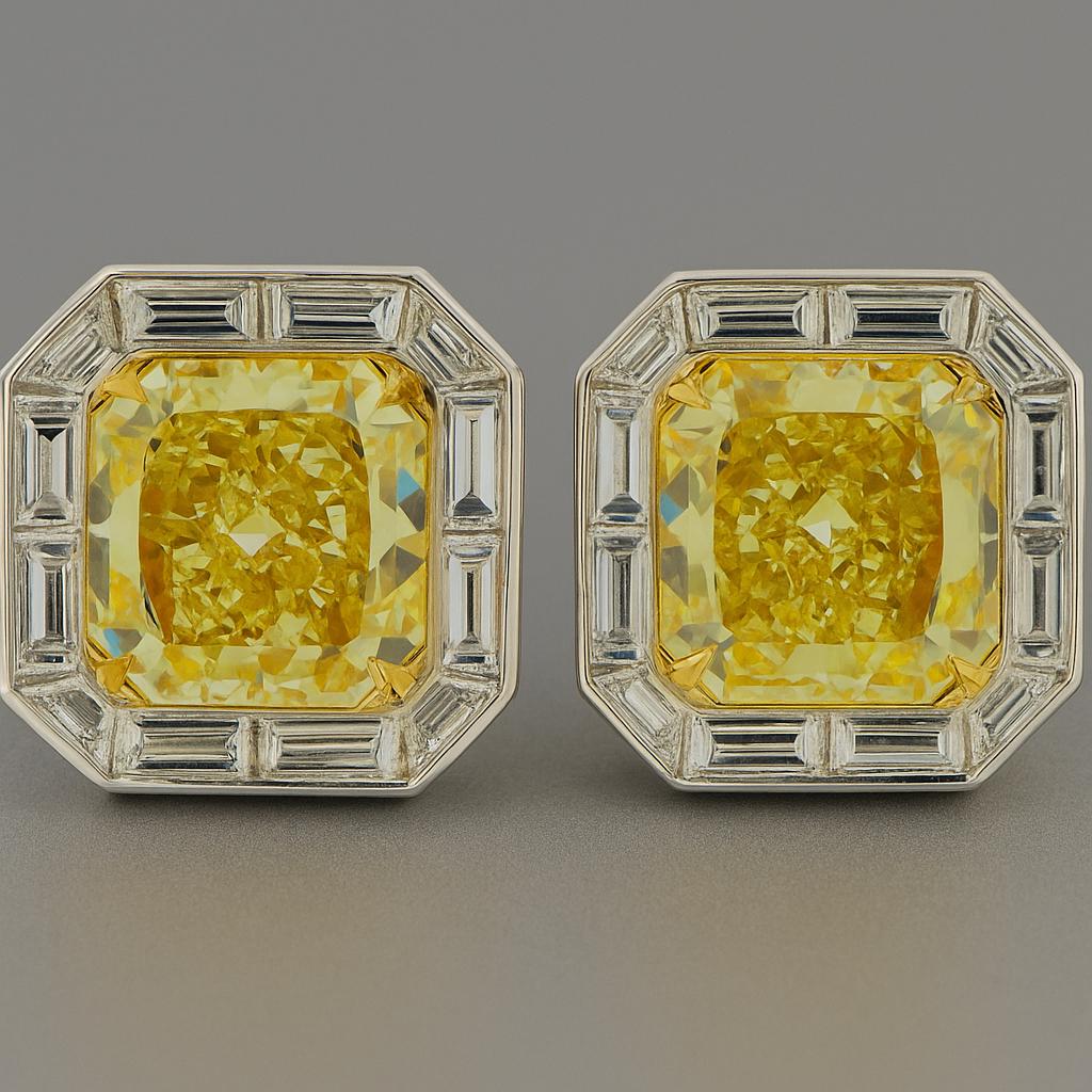 Radiate pure brilliance and timeless luxury with these GIA Certified 10.61 Carat Fancy Intense Yellow Diamond Earrings, masterfully handcrafted for the true connoisseur of fine jewelry. Each earring features a natural, earth-mined Fancy Intense Yellow diamond, boasting Internally Flawless (IF) clarity — a mark of absolute perfection that allows light to pass effortlessly through the stone, creating an unmatched sparkle.