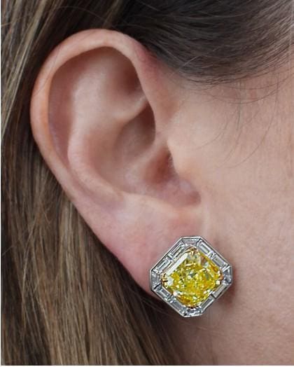 GIA Certified 10.61CT Internally Flawless Fancy Intense Yellow Diamond Earrings | Natural Canary Diamond Studs in 18K Gold Earrings