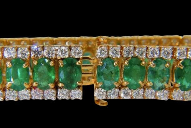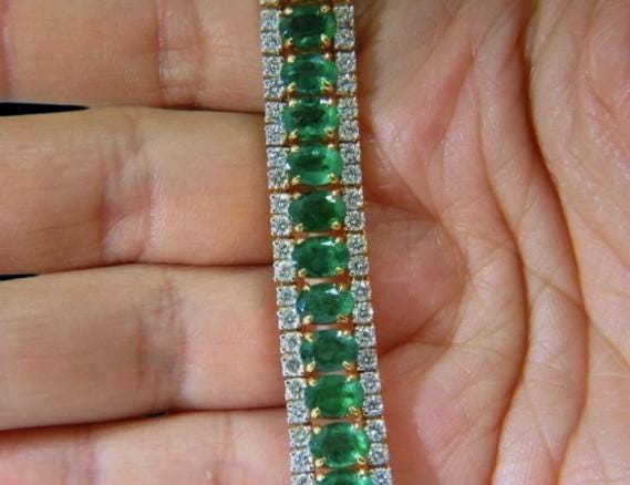 27.65ct Natural Vivid Green Emerald Diamond Bracelet F/VS Clarity 14K Yellow Gold Luxury Fine Jewelry Handmade Gemstone Tennis Bracelet