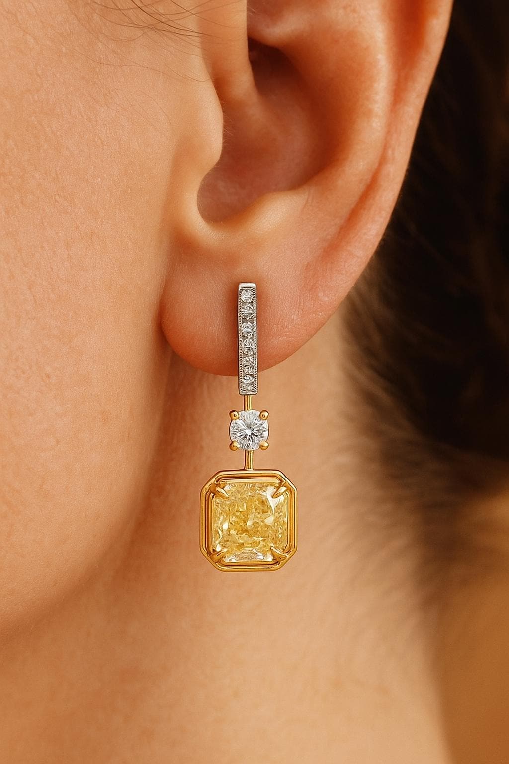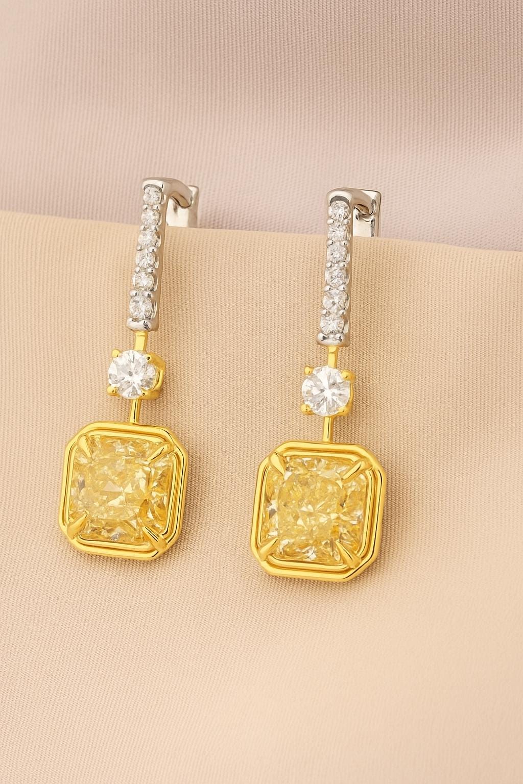The vibrant Fancy Yellow diamonds are beautifully accented with white brilliant-cut diamonds, creating a striking balance of sparkle and warmth. Designed with masterful craftsmanship, these earrings reflect timeless luxury — perfect for evening wear, weddings, anniversaries, or as a treasured investment piece.