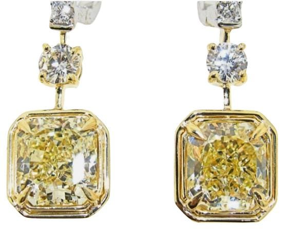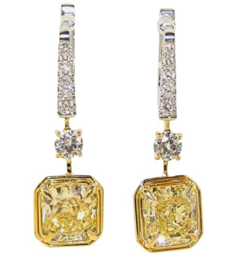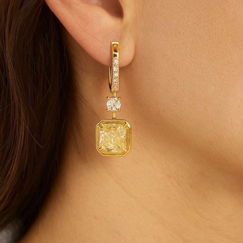 7.16 Carat Fancy Yellow Canary Diamond Earrings – GIA Certified | 18K Two-Tone Gold | Handcrafted Luxury Fine Jewelry