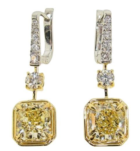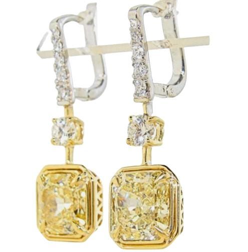 7.16ct Fancy Yellow Canary Diamond Earrings GIA Certified 18K Two Tone Gold Fine Jewelry Luxury Dangle Earrings Anniversary, Gift for Her