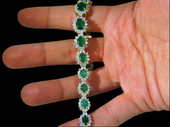 22.50 Carat Natural Emerald & Diamond Bracelet 18K Yellow Gold Luxury Fine Jewelry Handmade Gemstone Tennis Bracelet Gift for Her
