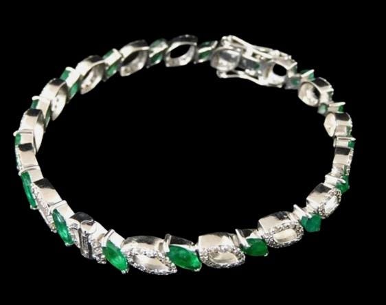 4.80 Carat Natural Diamond & Emerald Bracelet 14K White Gold Fine Jewelry Luxury Handmade Gemstone Tennis Bracelet Bridal Wedding Gift for