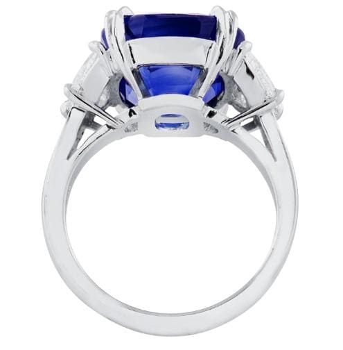 10.43 Carat Natural Burma No Heat Blue Sapphire & Diamond Three-Stone Ring 18K White Gold Certified Gemstone Engagement Ring Gift for Her