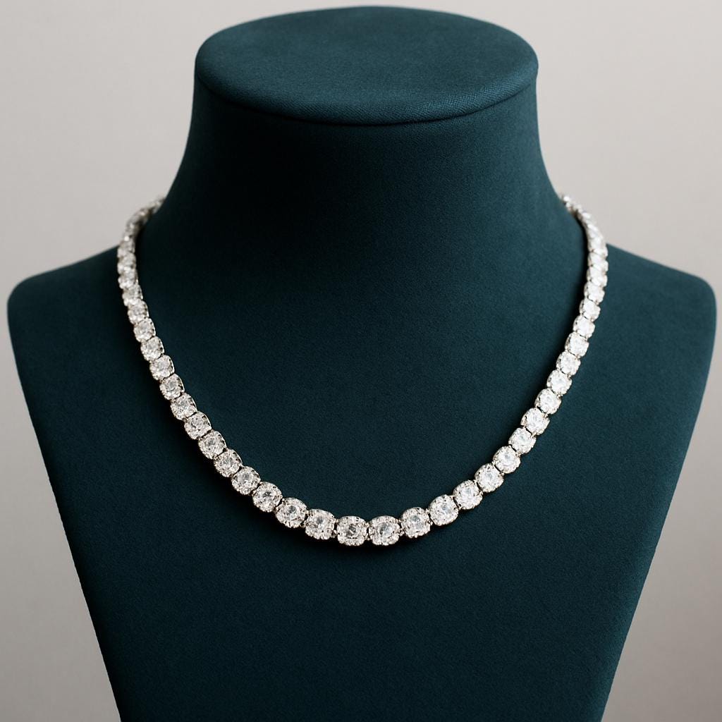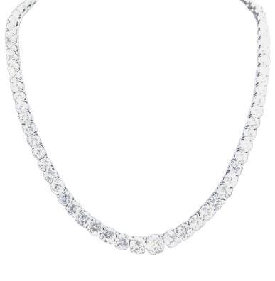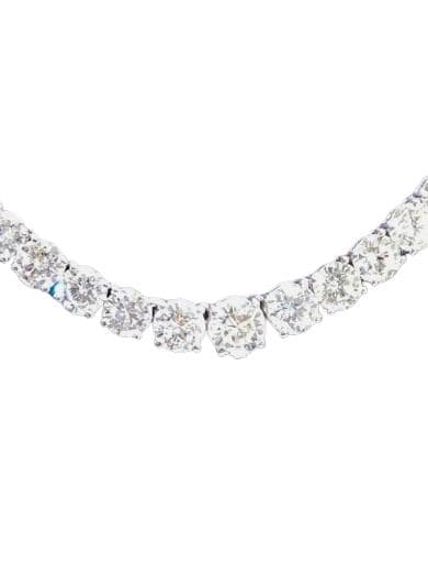 18K White Gold Diamond Tennis Necklace, Graduated Statement Jewelry
