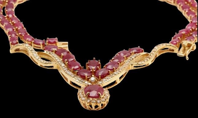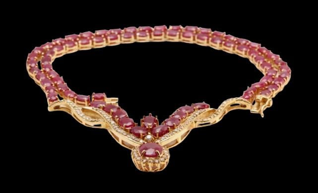 54.14 carat Natural Ruby & Diamond Necklace, masterfully set in 14K Solid Yellow Gold. This luxury statement piece is a celebration of elegance, rarity, and timeless craftsmanship—perfect for collectors, gemstone enthusiasts, and anyone who appreciates exceptionally fine jewelry.