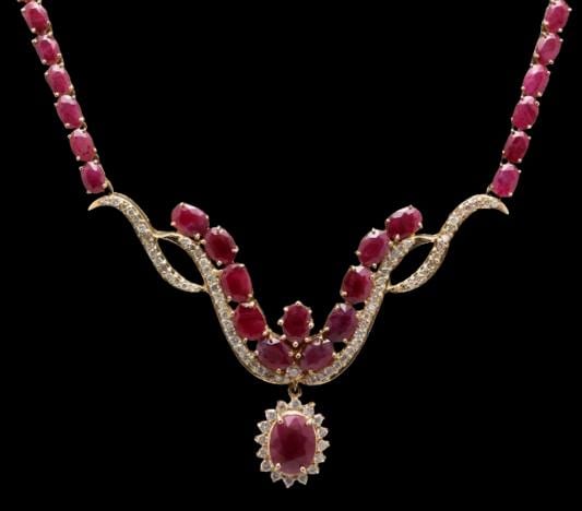 Ruby Diamond Necklace, 54.14Ct 14K Yellow Gold Fine Jewelry